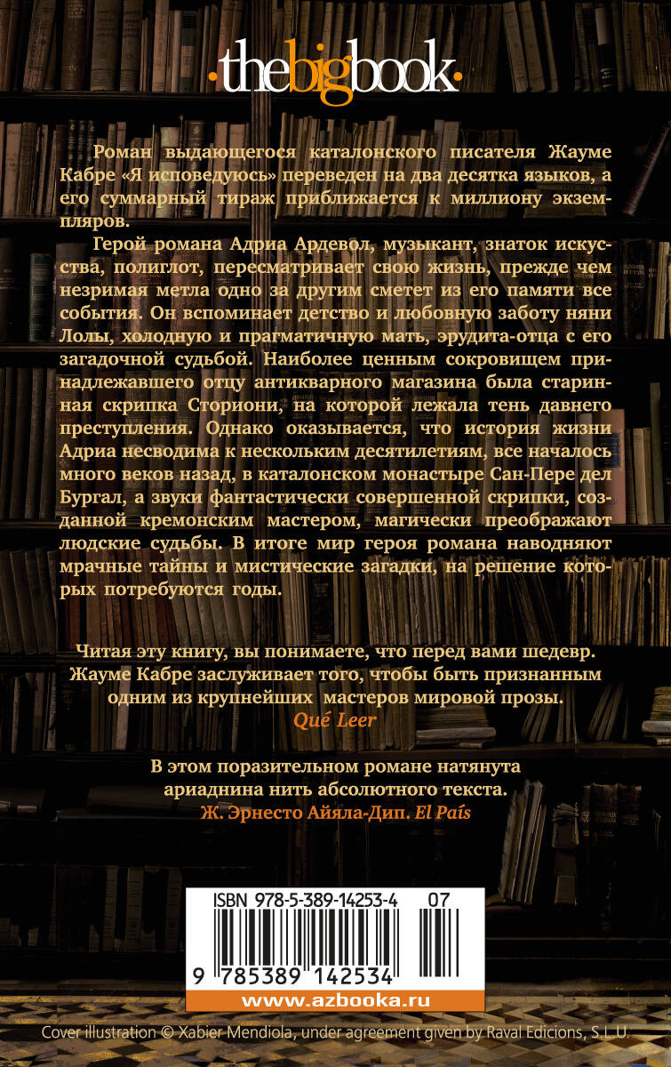 Роман выдающегося каталонского писателя Жауме Кабре "Я исповедуюсь" переведен на двенадцать языков, а его суммарный тираж приближается к полумиллиону экземпляров.