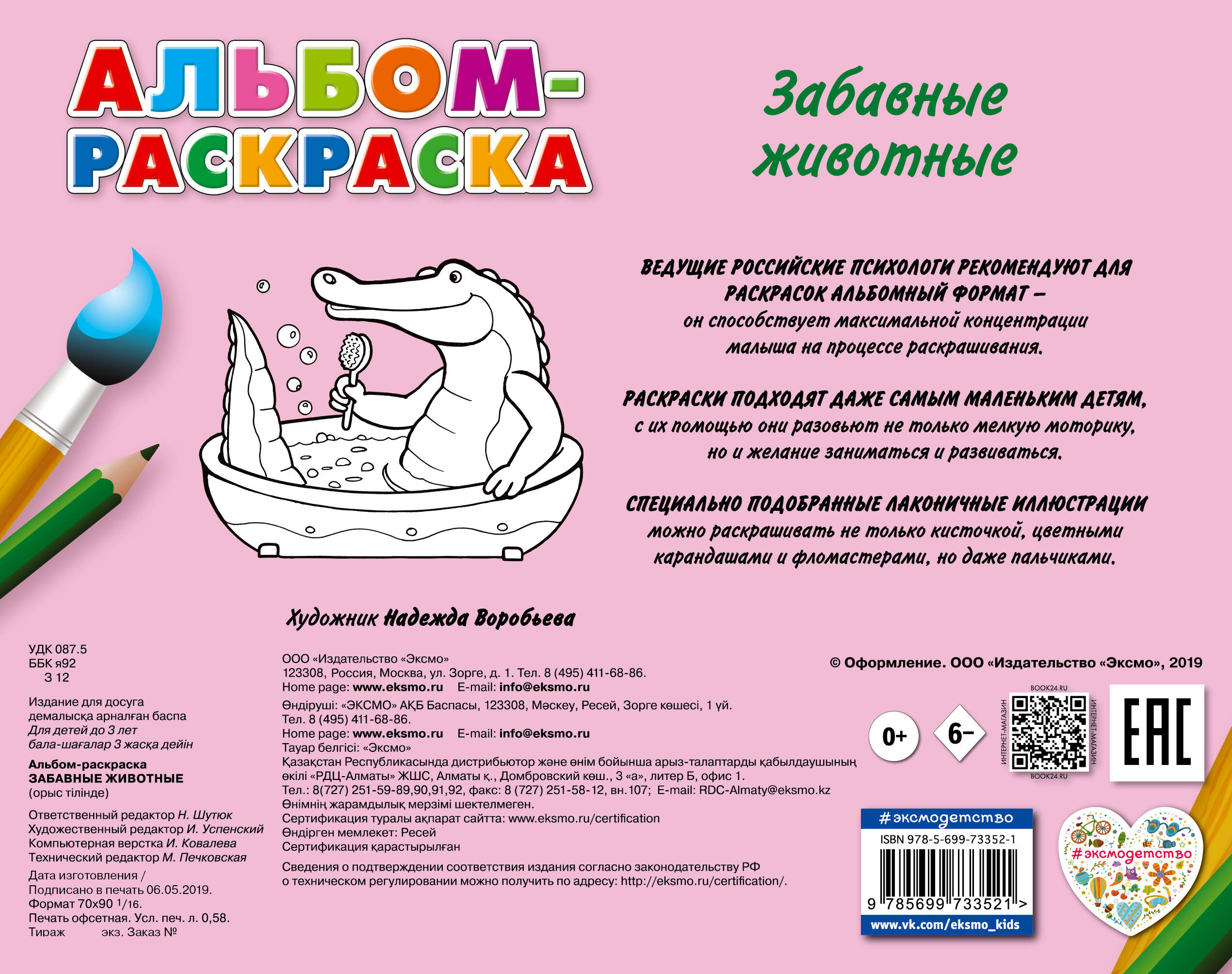 Расркаска альбомного формата с лаконичными иллюстрациями. Идеально подойдет для первой практики ребёнка в закрашивании изображений и тренировки руки.
