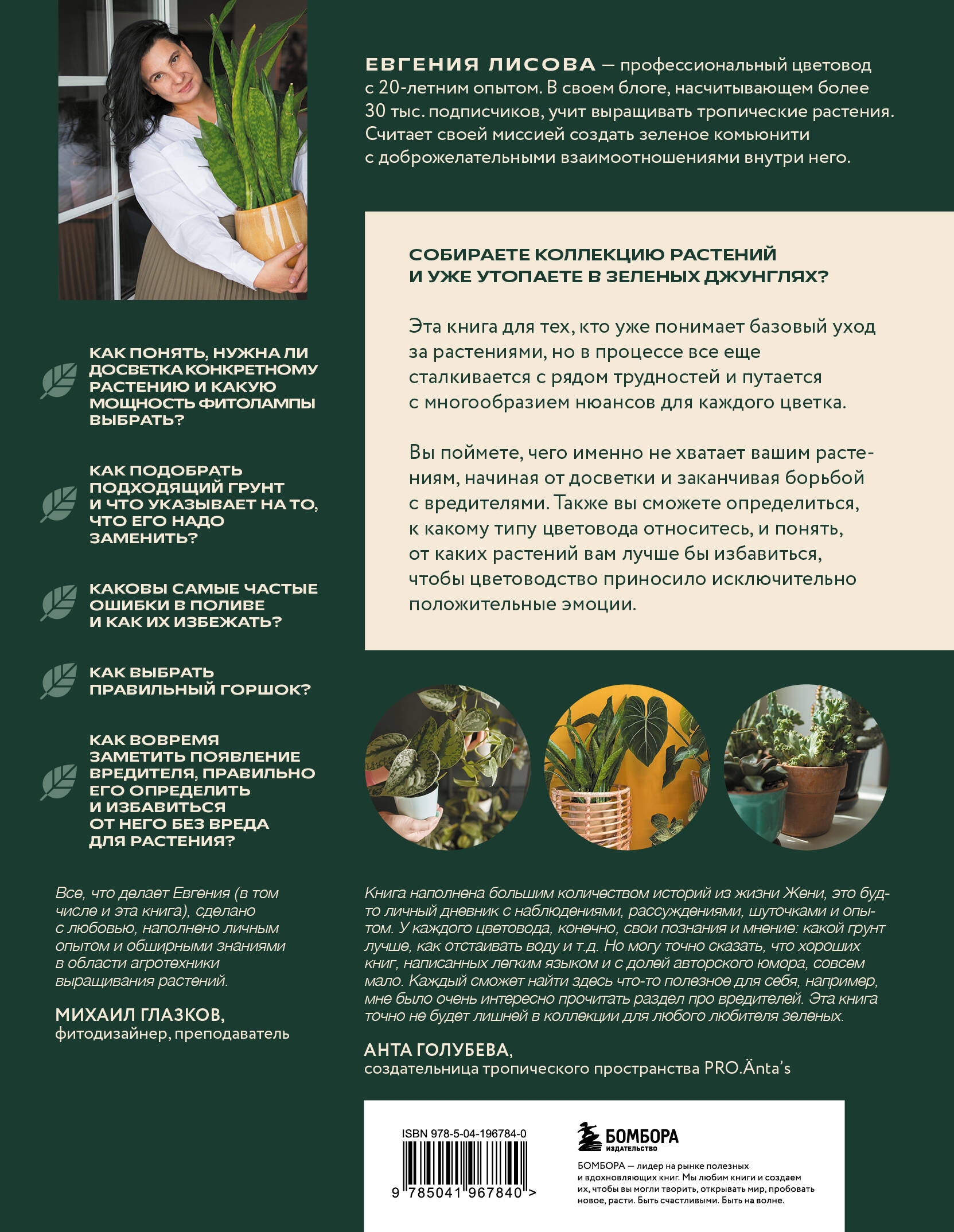 Эта книга для тех, кто уже понимает базовый уход за растениями, но в процессе все еще сталкивается с рядом трудностей и путается с многообразием нюансов для каждого цветка. Вы поймете, чего именно не хватает вашим растениям, начиная от досветки и заканчивая борьбой с вредителями. Также вы сможете определиться, к какому типу цветовода относитесь, и понять, от каких растений вам лучше бы избавиться, чтобы цветоводство приносило исключительно положительные эмоции. А секретные лайфхаки от профессионального цветовода Евгении Лисовой, написанные легким языком с долей юмора, обязательно помогут вам вырастить пышные кусты, которыми даже можно будет прикрыться в день голого цветовода!