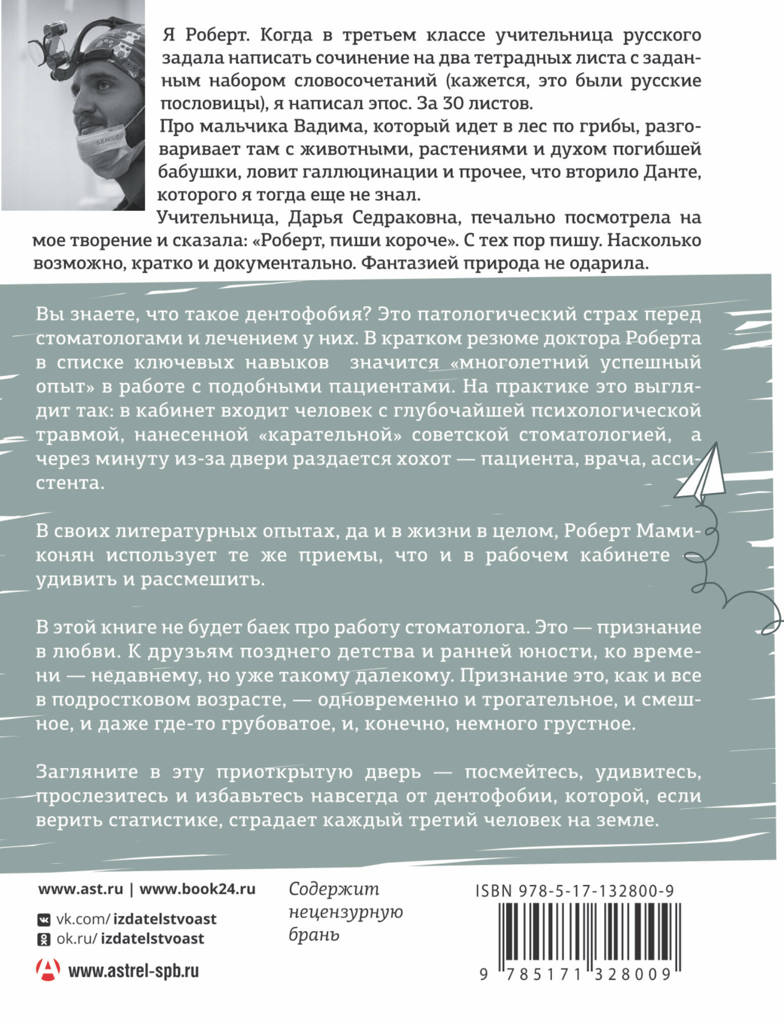 Вы знаете, что такое дентофобия? Это патологический страх перед стоматологами и лечением у них. В кратком резюме доктора Роберта в списке ключевых навыков значится "многолетний успешный опыт" в работе с подобными пациентами. На практике это выглядит так: в кабинет входит человек с глубочайшей психологической травмой, нанесенной "карательной" советской стоматологией, а через минуту из-за двери раздается хохот — пациента, врача, ассистента.