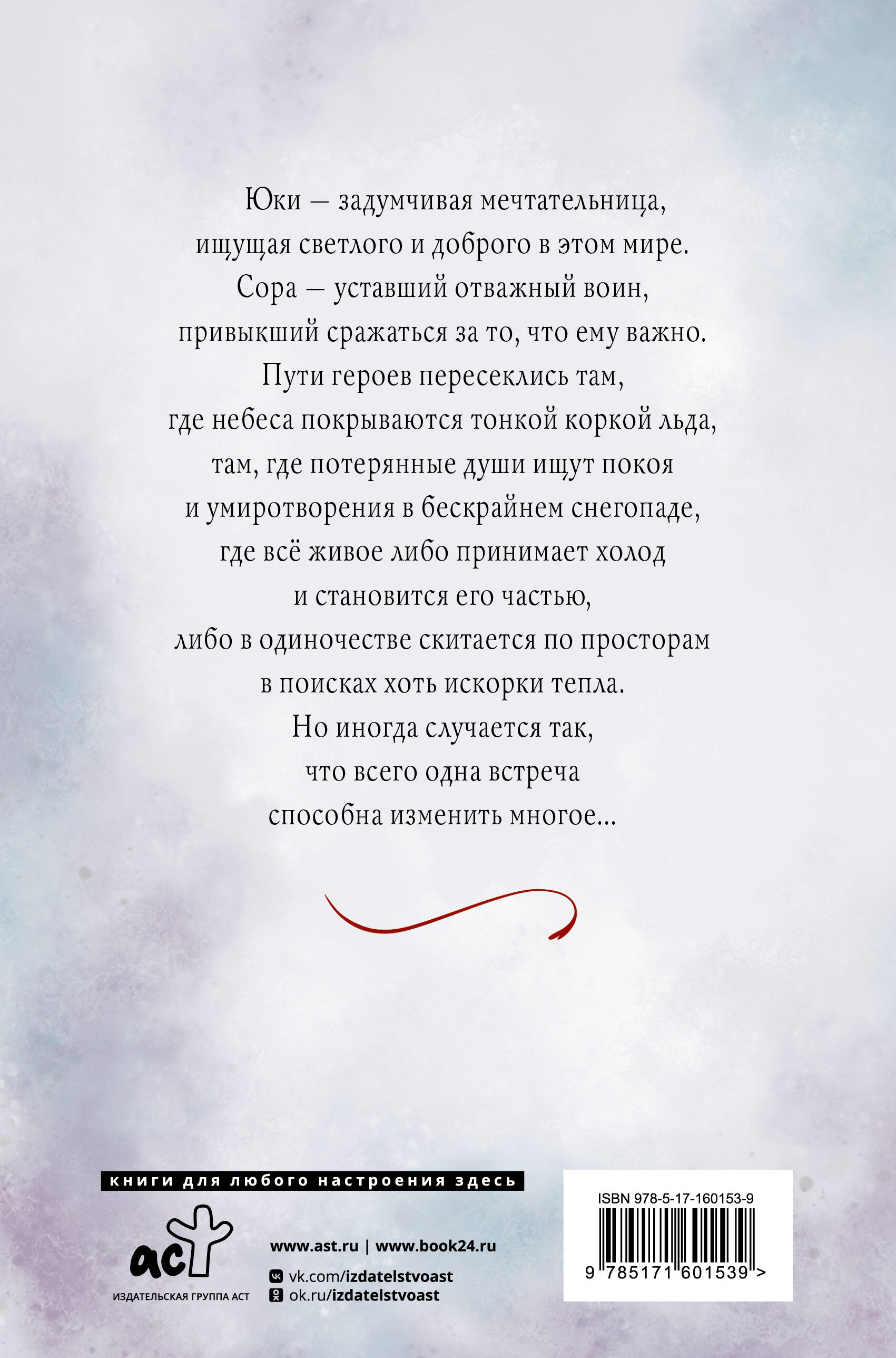 Юки - задумчивая мечтательница, ищущая светлое и доброе в этом мире. Сора – уставший и отважный воин, привыкший сражаться за то, что ему важно. Пути героев пересеклись там, где небеса покрываются тонкой коркой льда, там, где потерянные души ищут покоя и умиротворения в бескрайнем снегопаде, а всё живое либо принимает холод и становится его частью, либо в одиночестве скитается по просторам в поисках хоть искорки тепла.