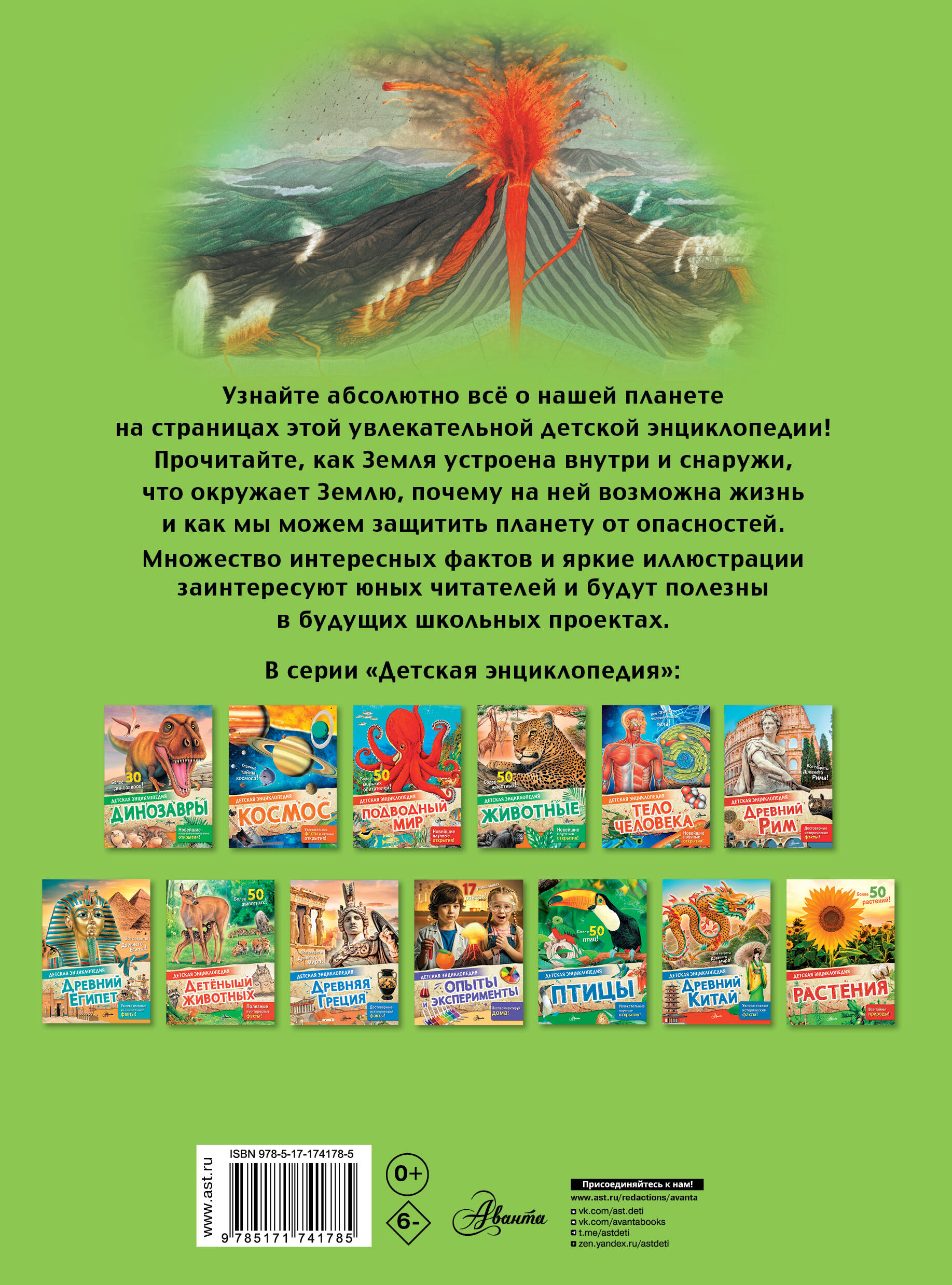 От атмосферы до ядра Земли, от городов до полей и пастбищ, от океанских глубин до гор и вулканов. Книга прекрасно подойдёт для первого знакомства с историей и устройством планеты, на которой мы живём. Множество полезных фактов и информативные иллюстрации обязательно заинтересуют юных читателей и помогут в будущих школьных проектах.
