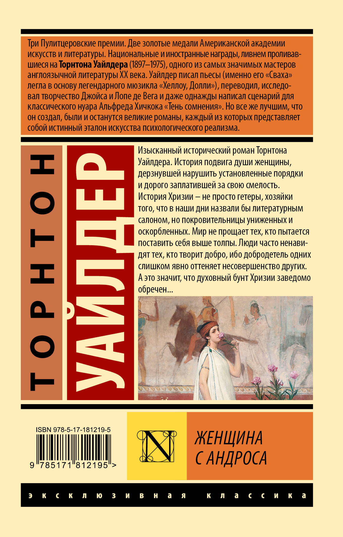 – «Женщина с Андроса» — исторический роман Торнтона Уайлдера, американского прозаика и драматурга, трижды удостоенного Пулитцеровской премии. Автор — мастер глубокого повествования с тонким психологизмом.