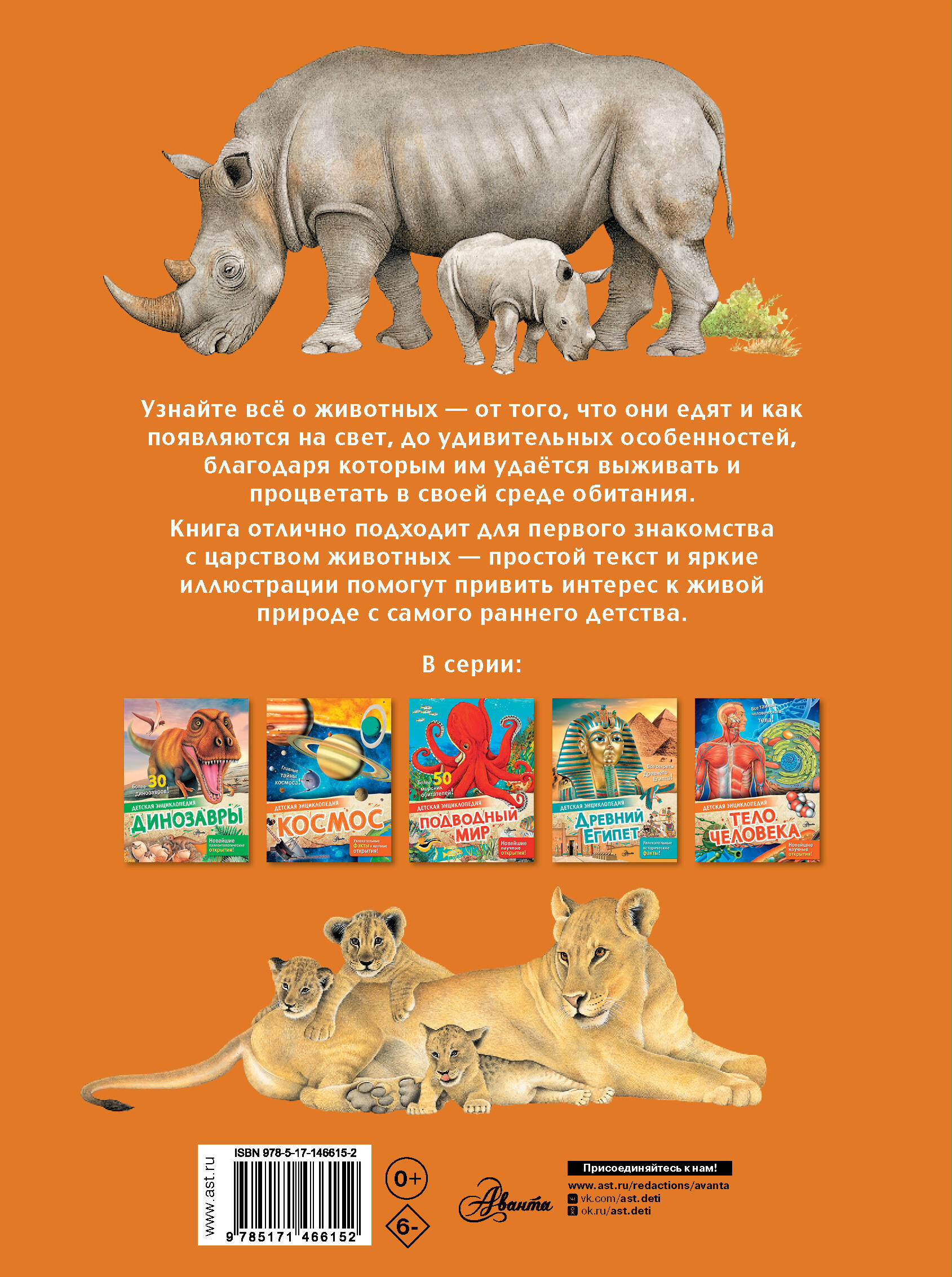 "Животные" из серии "Детская энциклопедия" — то, что нужно, чтобы заинтересовать детей миром животных. Читателей ждут яркие иллюстрации, интересные вопросы, краткие и понятные ответы и множество животных — от крошечных грызунов до огромных слонов и китов.