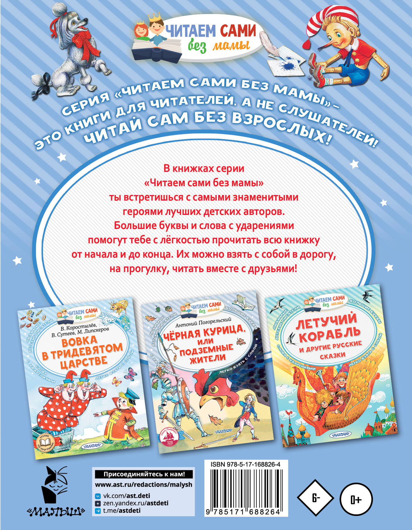 Книги серии «Читаем сами без мамы» — это уникальное собрание золотого фонда отечественной литературы! Сказки, стихи рассказы с красочными иллюстрациями понравятся каждому малышу! Все произведения серии входят в обязательную программу по чтению, а крупный шрифт и ударения помогут ребёнку самостоятельно познакомиться с шедеврами детской мировой литературы. В этой книге юные читатели познакомятся с известной волшебной сказкой Алексея Толстого. Ребята познакомятся с добрыми и отважными героями, отправятся в увлекательные приключения и научатся доброте, дружбе и взаимопомощи. Лучший подарок для юного читателя!