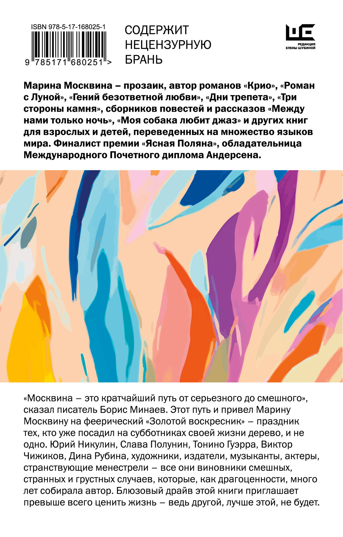 В «Редакции Елены Шубиной» выходит переиздание сборника прозы «Золотой воскресник» Марины Москвиной – одного из самых светлых современных писателей, финалиста премии «Ясная Поляна», лауреата Международного почетного диплома Андерсена, автора книг «Роман с Луной», «Крио», «Три стороны камня», «Моя собака любит джаз и многих других.