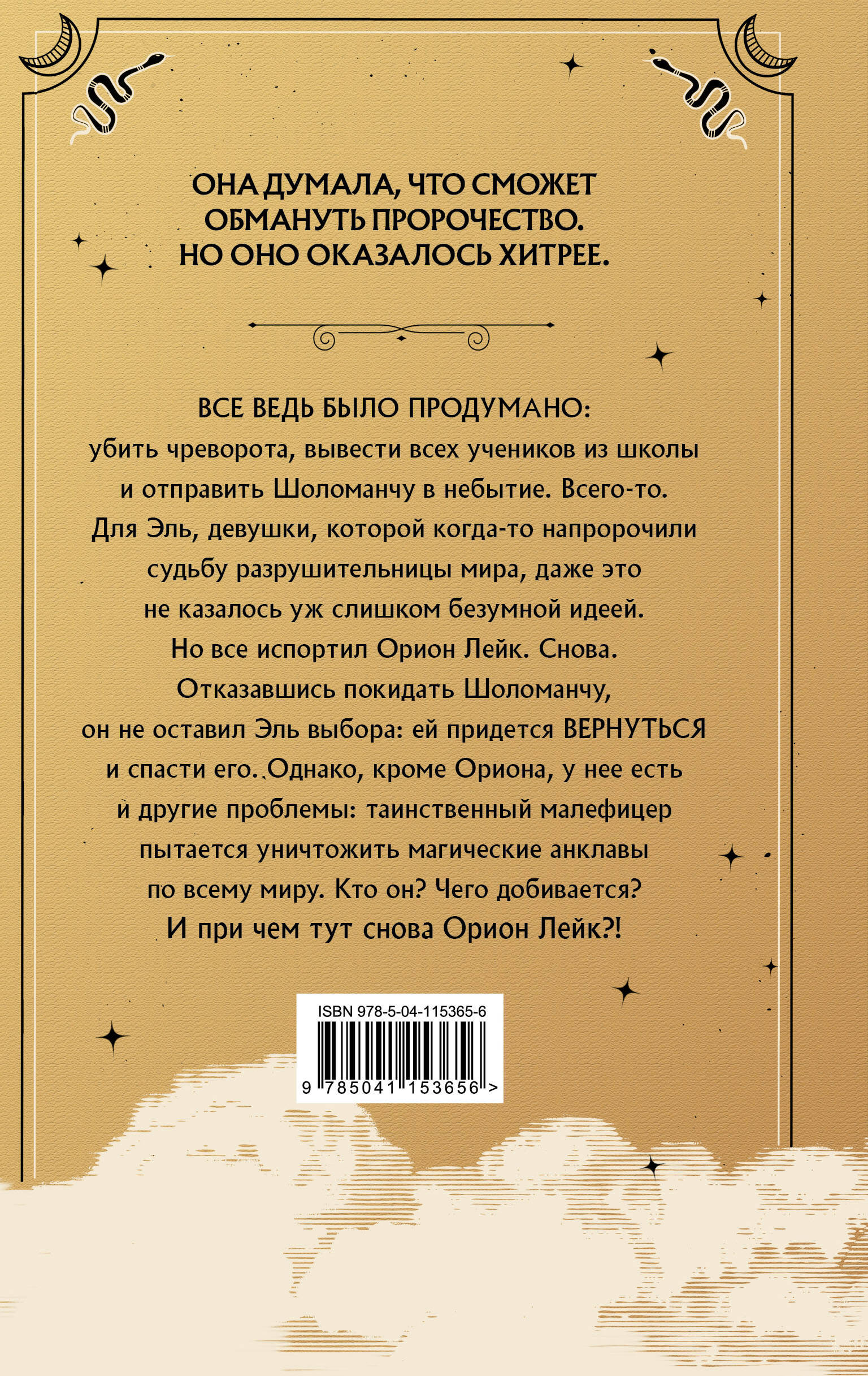 Всё было продумано: убить чреворота, вывести всех учеников из школы и отправить Шоломанчу в небытие. Всего-то. Для Эль, девушки, которой когда-то напророчили судьбу разрушительницы мира, даже это не казалось уж слишком безумной идеей. Но всё испортил Орион Лейк. Снова. Отказавшись покидать Шоломанчу, он не оставил Эль выбора: ей придётся вернуться и спасти его. Однако, кроме Ориона, у неё есть и другие проблемы: таинственный малефицер пытается уничтожить магические анклавы по всему миру. Кто он? Чего добивается? И при чём тут снова Орион?!